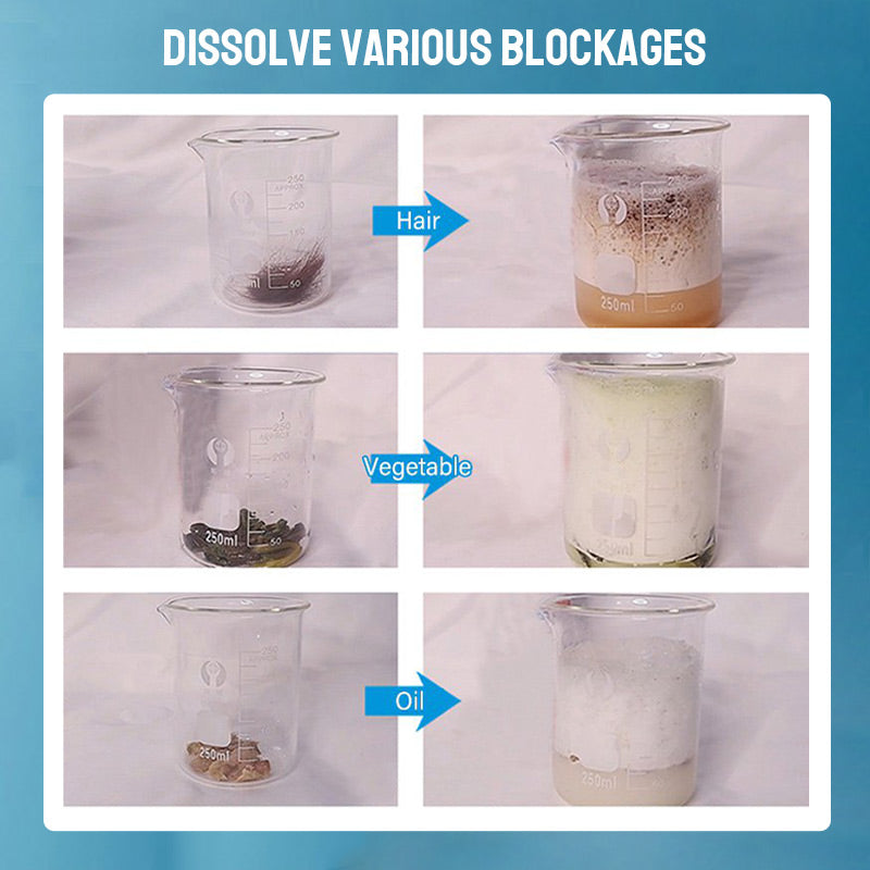 FEATURES * Leistungsstarke Funktion: Er kann Rohrverstopfungen wie Haare, Papier, Seifenschaum, Gemüse, Obst, Speisereste, Fett und organische Stoffe schnell auflösen.